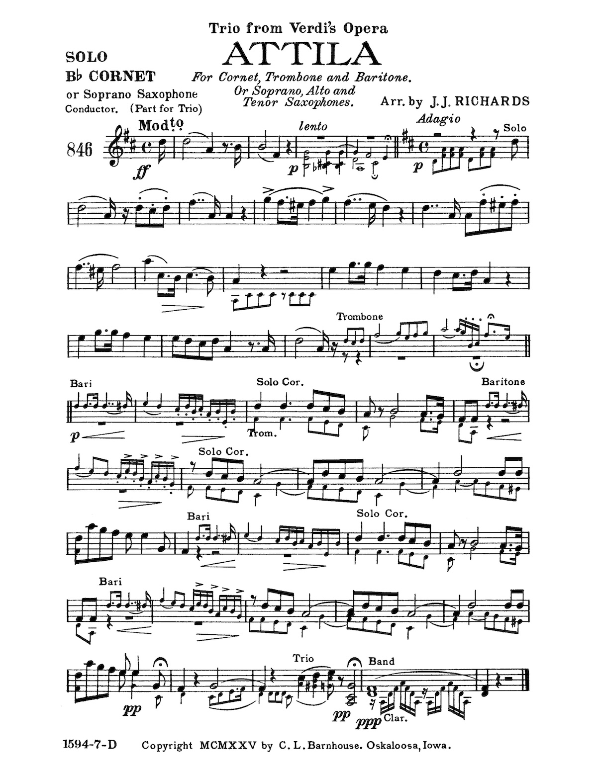 | notes | Trio from Act III of Verdi’s Opera, Attila (Te sol, te sol quest'anima). For Cornet, Trombone and Baritone. Or Soprano, Alto and Tenor Saxophones. |