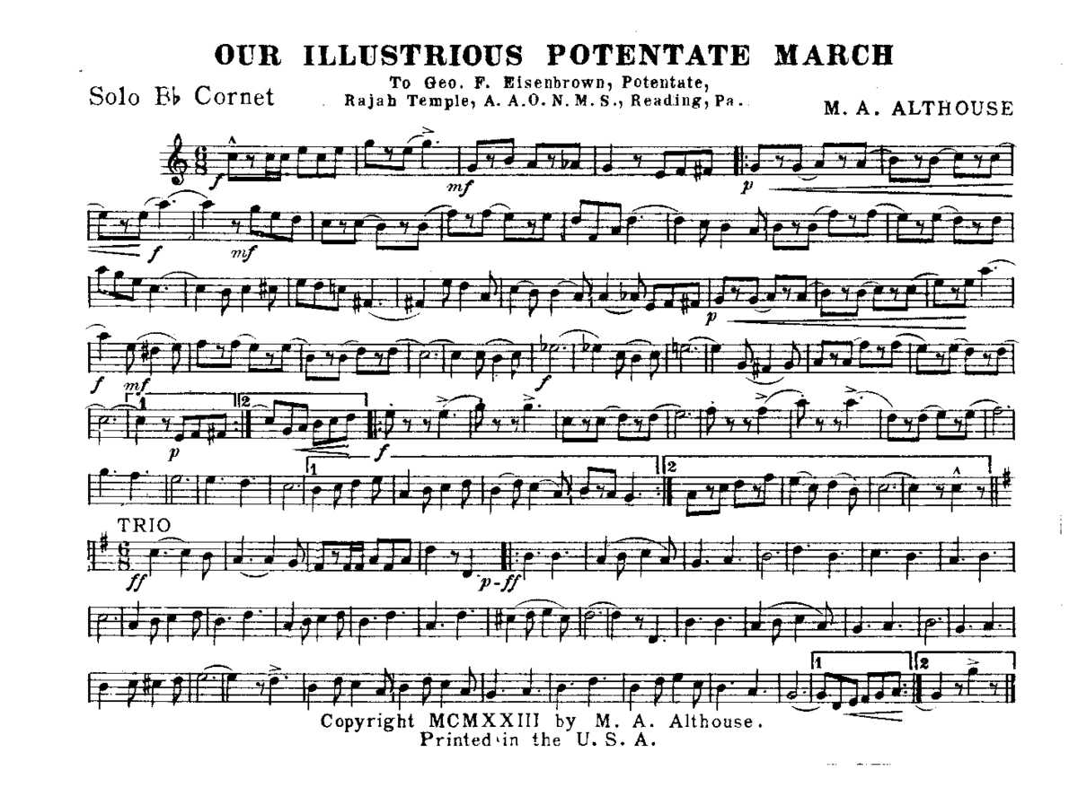 | dedication | To Geo. F. Eisenbrown, Potentate, Rajah Temple, A. A. O. N. M. S., Reading, Pa. |