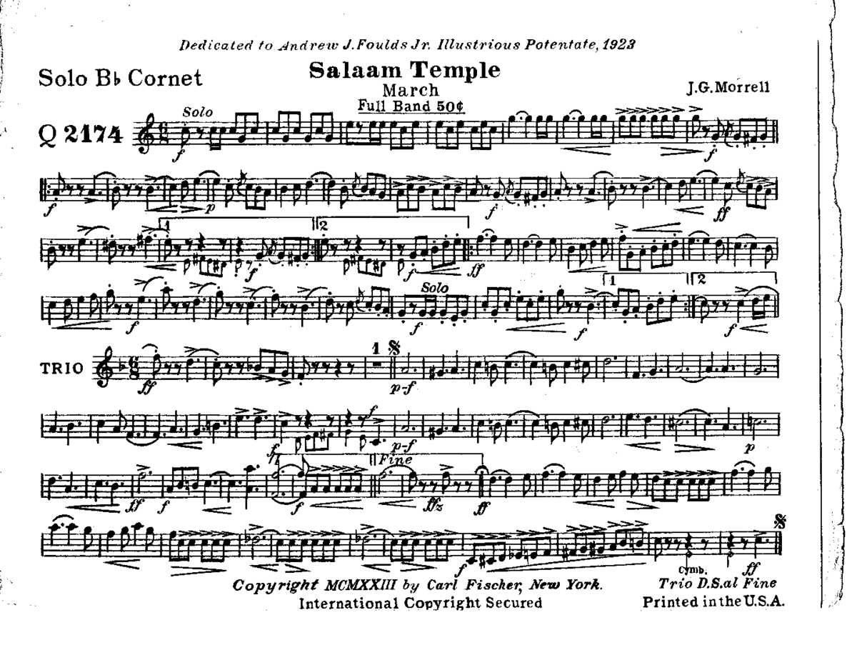 | dedication | Dedicated to Andrew J. Foulds, Illustrious Potentate 1923 |